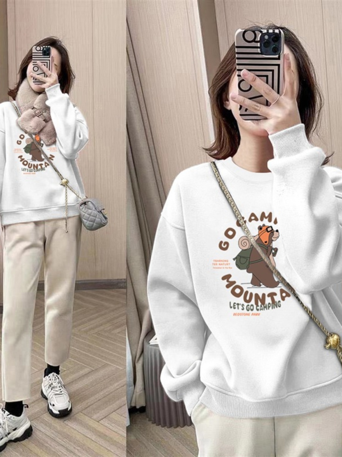 天山东即墨卫衣女2024新款爆款大码拼接高级感秋冬加绒加厚外套上衣