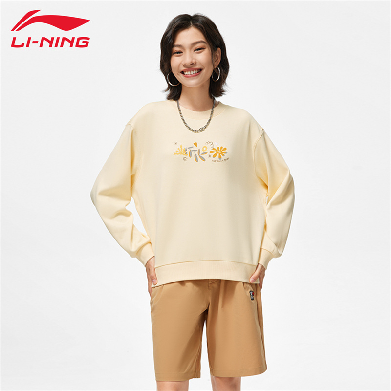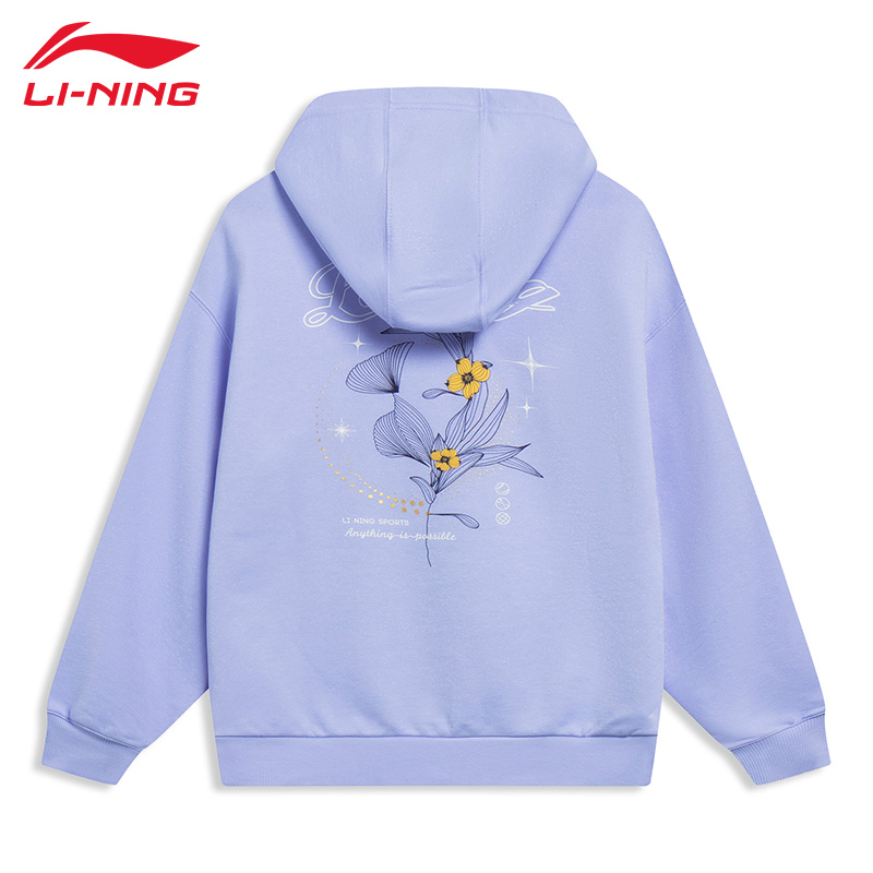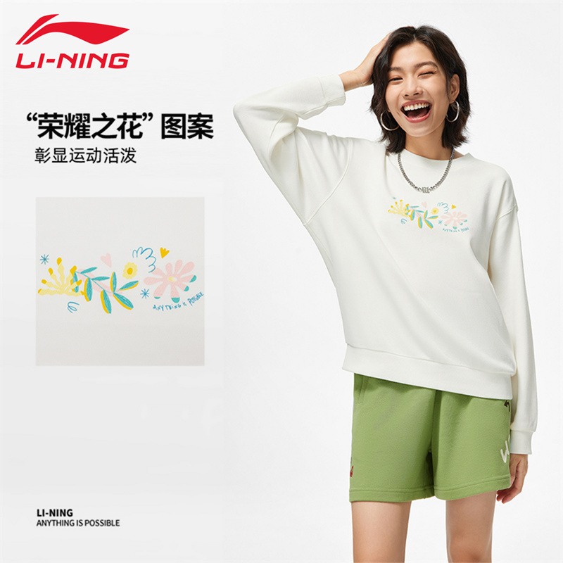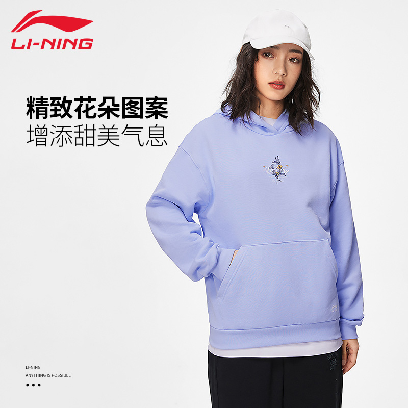 天猫李宁运动卫衣女子秋冬新款印花休闲宽松套头衫无帽卫衣潮流运动服