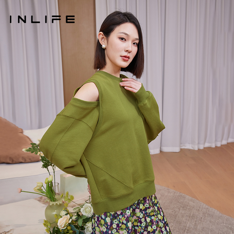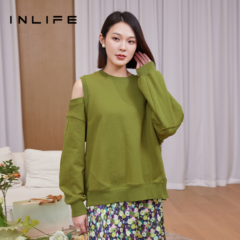 淘品牌专柜正肩女装秋冬季加绒加厚设计感纯棉卫衣女洋气印花上衣潮
