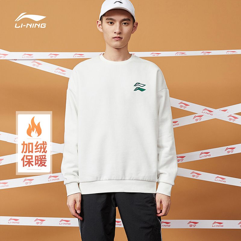 天猫李宁卫衣男女同款加绒秋冬保暖圆领套头衫宽松休闲运动百搭打底衫