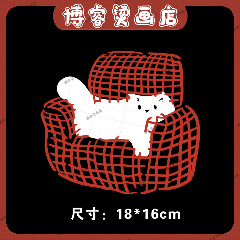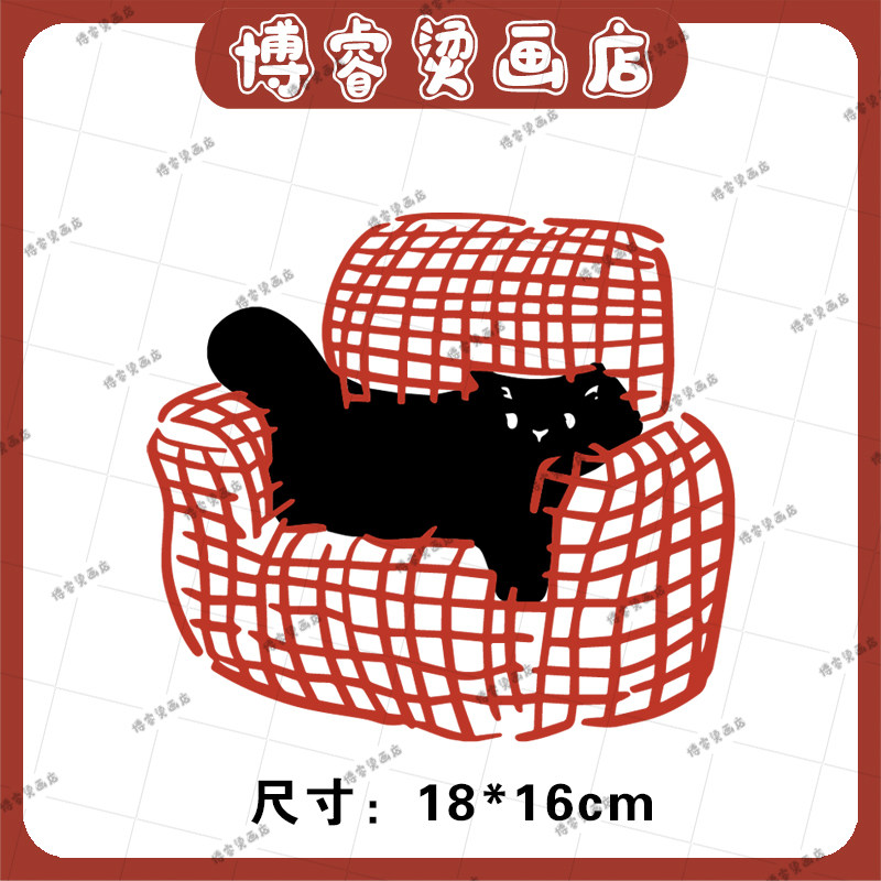 淘宝白墨烫画贴 趣味小猫印花辅料装饰贴女装T恤卫衣新款图案热转印