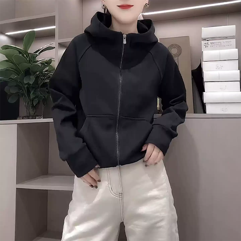 淘宝2025年秋冬新款加绒减龄百搭黑色拉链连帽卫衣开衫外套上衣小个子