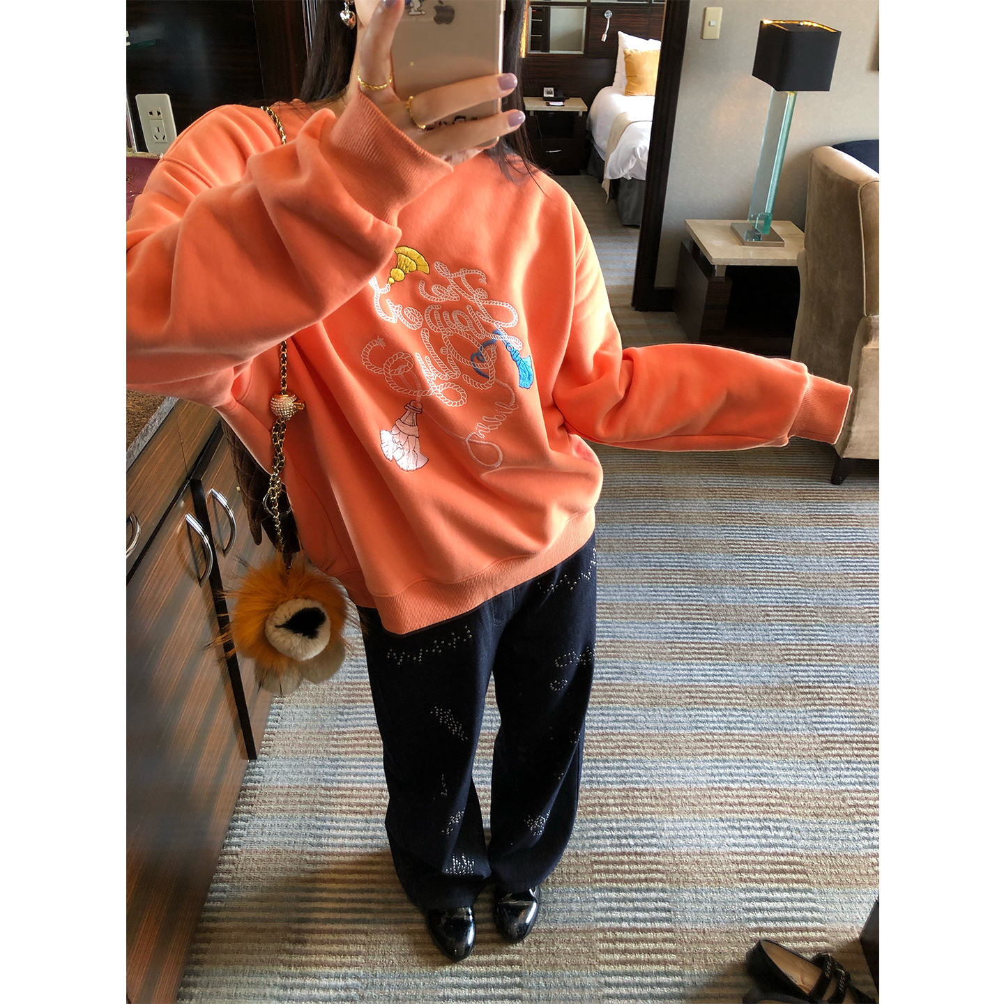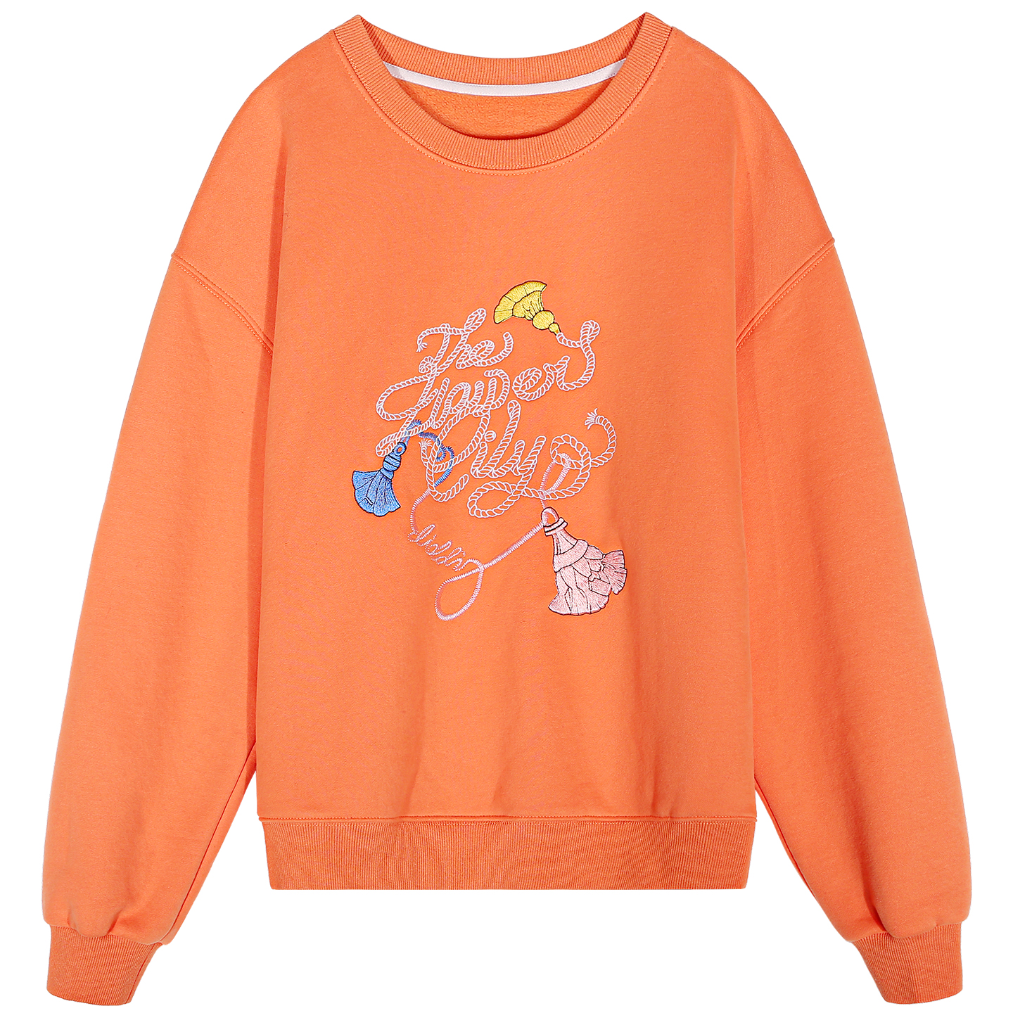 淘宝落落狷介加绒卫衣女2025新款加厚粉色刺绣套头小个子宽松外套圆领