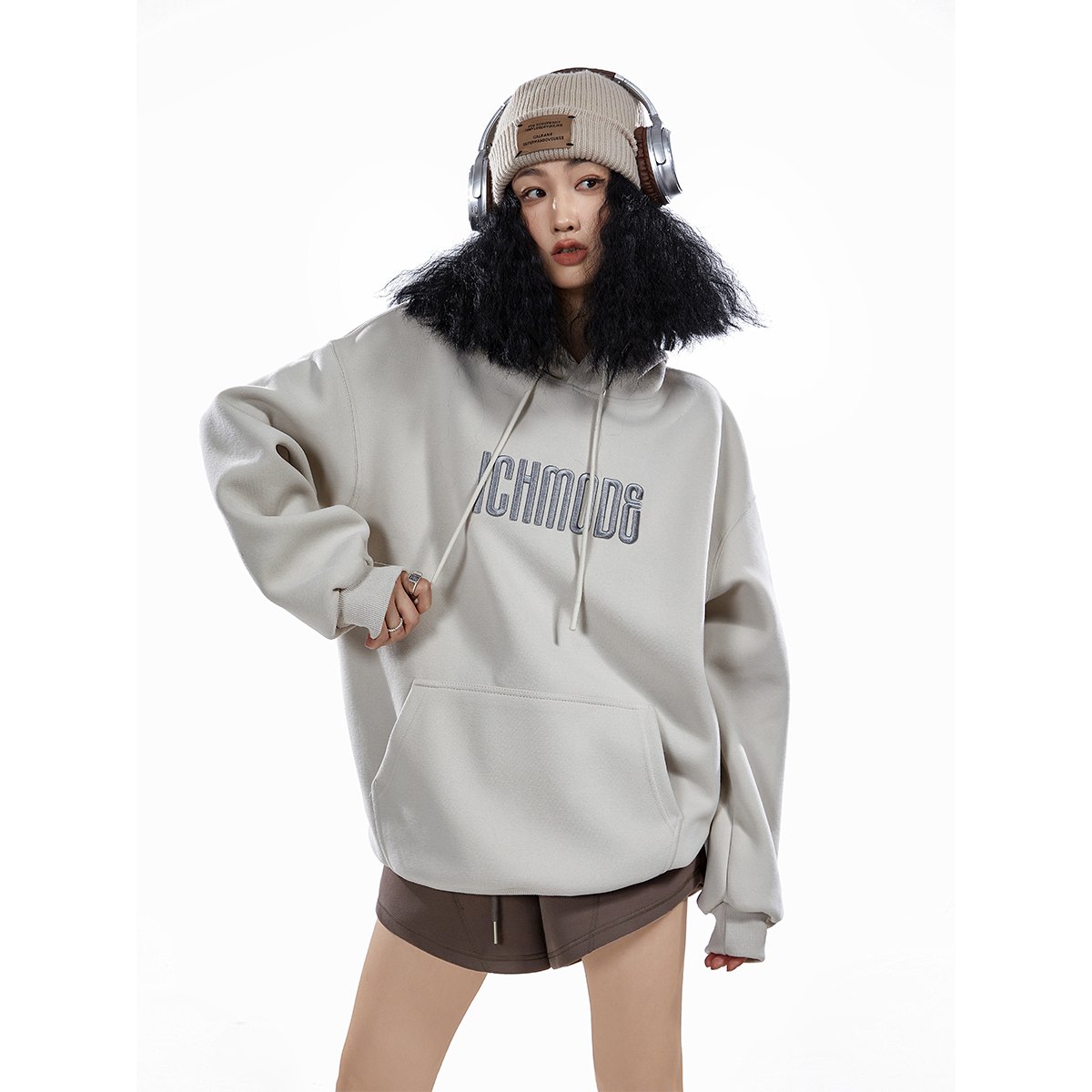 淘宝ICH MODE 美式复古连帽白色卫衣女新款秋冬宽松外套上衣oversize