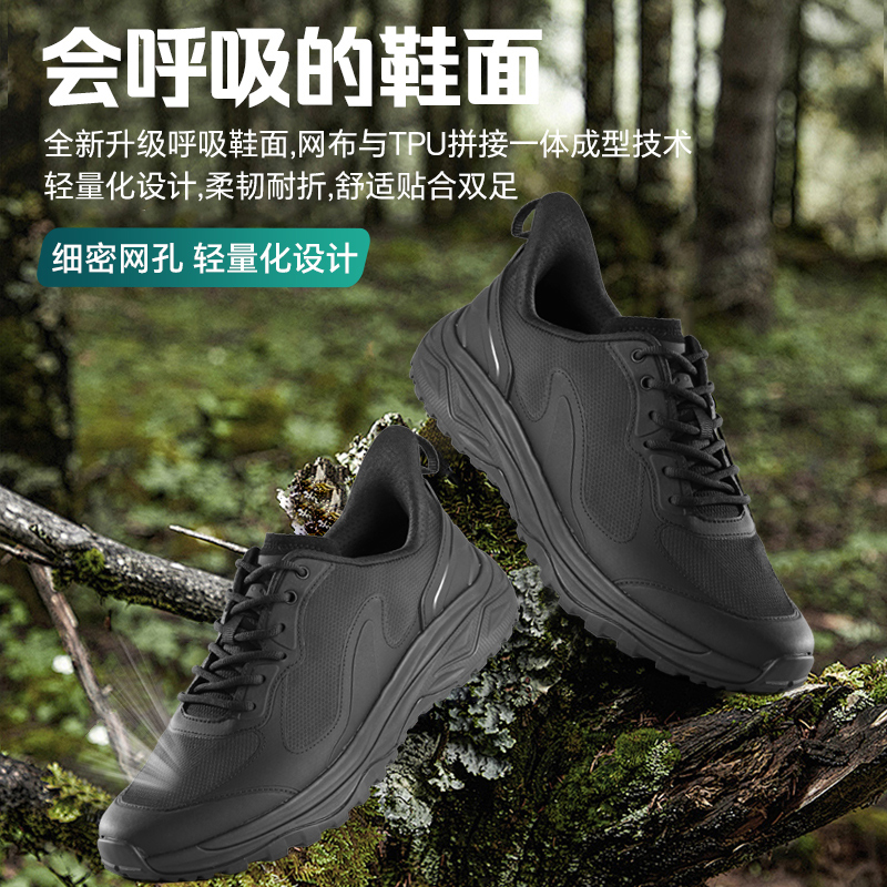 淘金猴作训鞋跑鞋运动休闲鞋轻便训练鞋解放鞋黑色网面运动鞋男