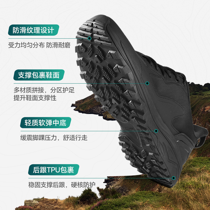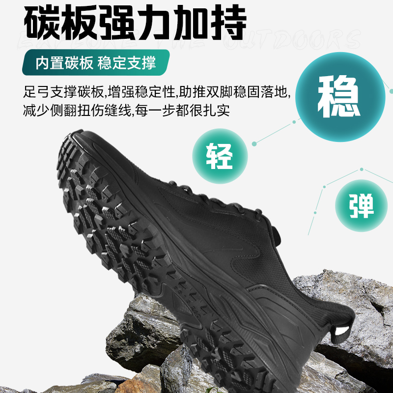 天强人3515男鞋新式训练鞋黑色厚底登山鞋户外越野徒步鞋防刺穿耐磨