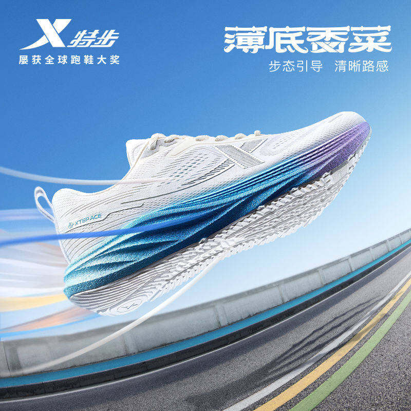 天猫特步薄底香菜丨跑鞋男鞋夏季网面透气运动鞋减震路跑训练鞋跑步鞋