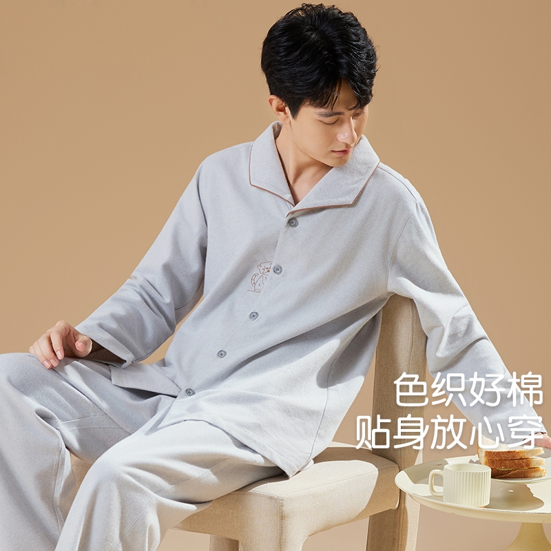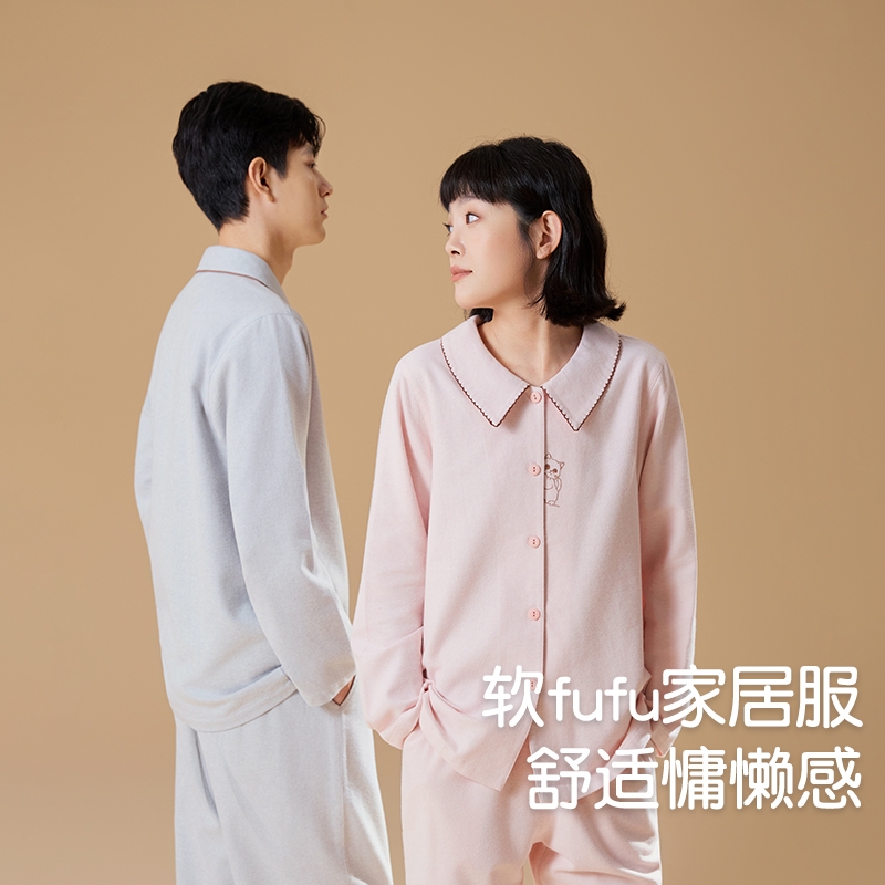 芬腾可安春季纯棉情侣睡衣春秋季女士长袖可外穿男生男士冬家居服
