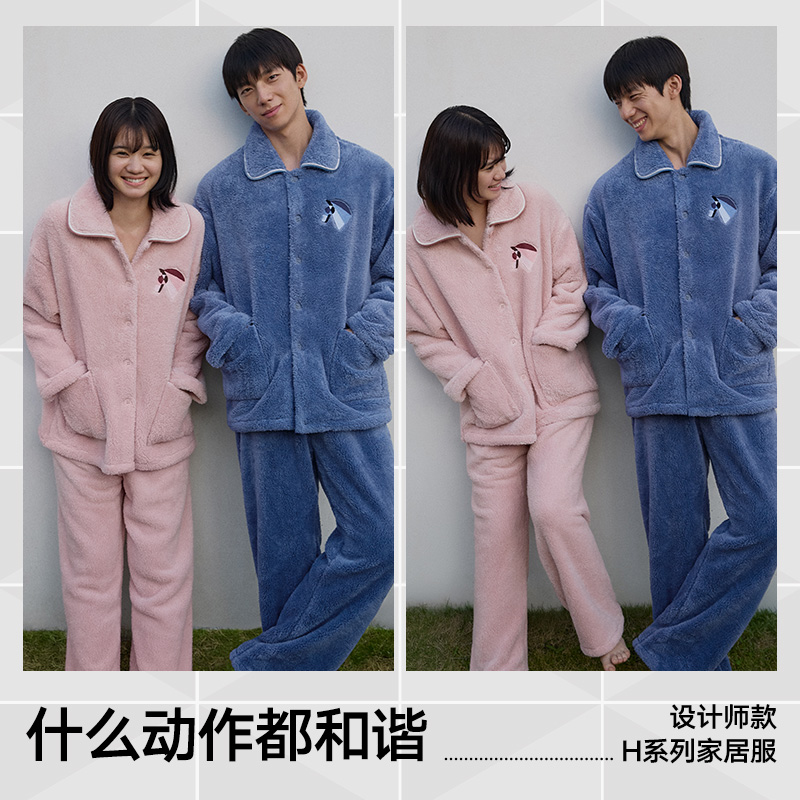 天猫【陈哲远同款】海澜之家情侣家居服套装25秋冬新款珊瑚绒加绒睡衣