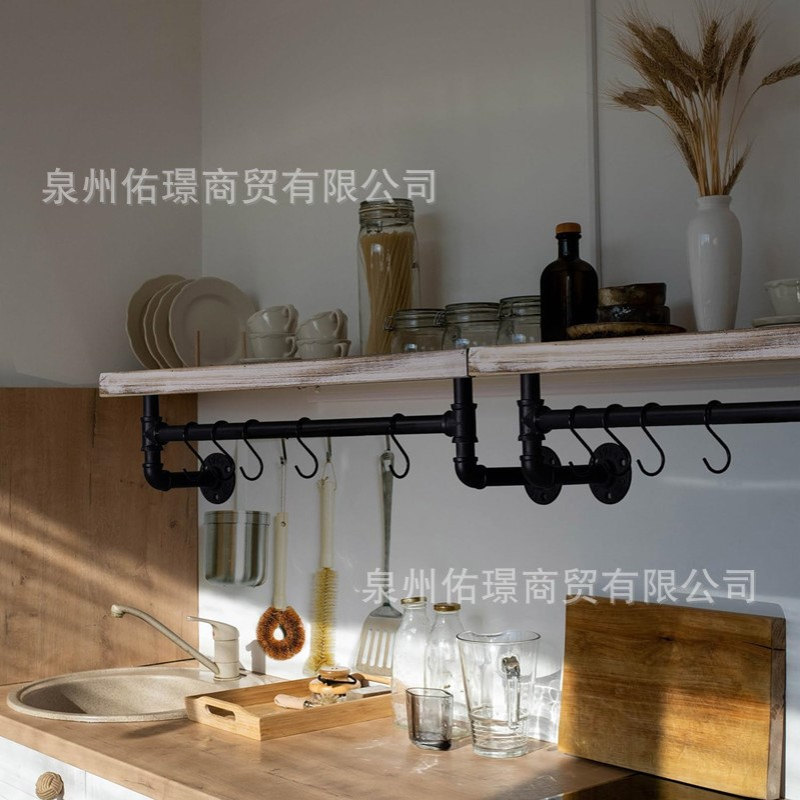 淘宝铁艺厨卫壁挂式一字挂件多功能悬挂收纳架工业水管毛巾服装置物架