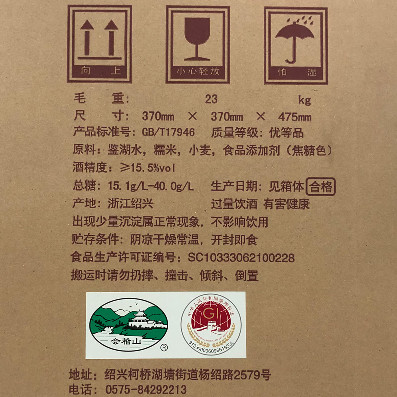 【刻字服务】会稽山黄酒是一款备受赞誉的老酒,采用手工冬酿工艺酿造,历经数年封坛陈酿,呈现出卓越的品质和口感。这款老酒以优质的黄酒为基础,通过特殊工艺加工而成,具有浓郁的香气和独特的口感。其包装精美,附刻字服务,可根据客户需求定制刻字,为您的珍藏品增添个性化和独特性。会稽山黄酒是一款珍贵的酒类收藏品,适合酒友们品尝和收藏。这款封坛老酒提供完整的解决方案,为您的珍贵记忆和庆祝活动留下完美的印记。无论自用还是送礼,它都是上佳之选。