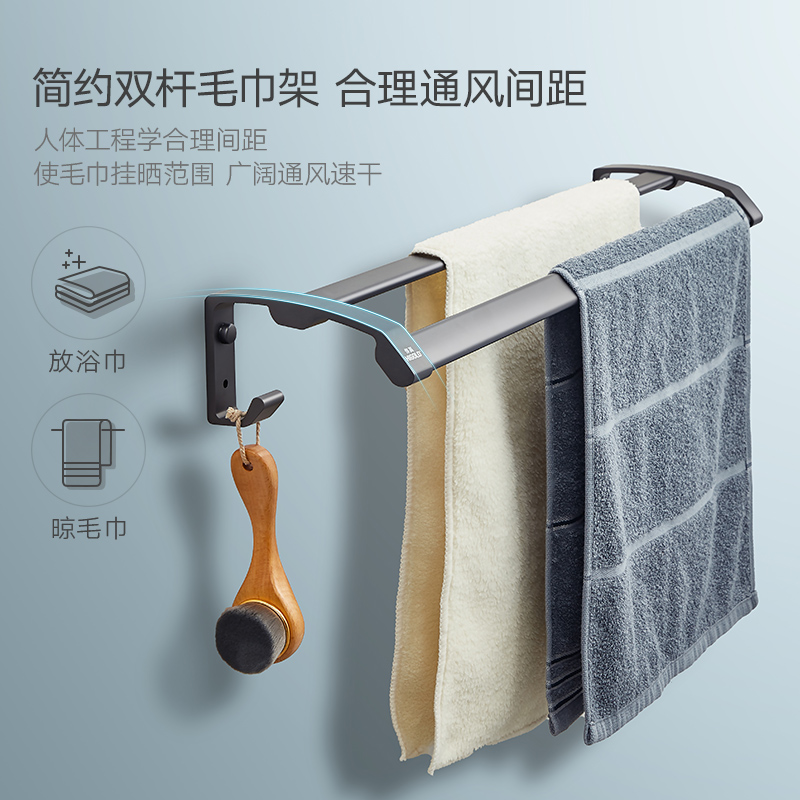 淘太空铝卫浴挂件双层毛巾架折叠浴巾架浴室卫生间置物架加厚带挂钩