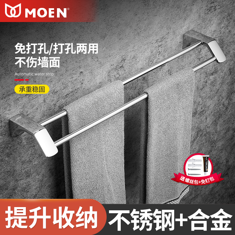 淘宝摩恩不锈钢浴巾架免打孔卫浴五金壁挂件卫生间毛巾架置物架套装
