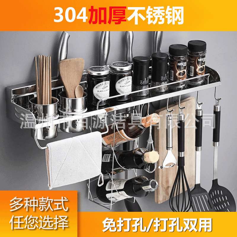 淘宝304不锈钢刀架厨房置物架多功能收纳挂件免打孔厨卫壁挂筷筒