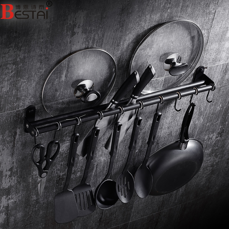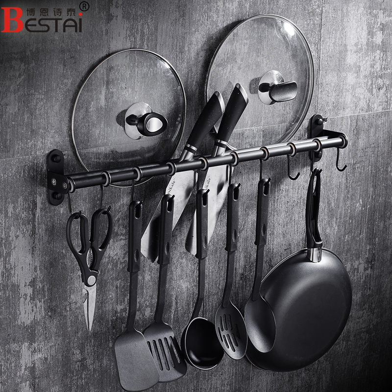 淘免打孔厨房挂杆挂件太空铝黑色厨房置物架厨具五金厨卫挂钩壁挂架
