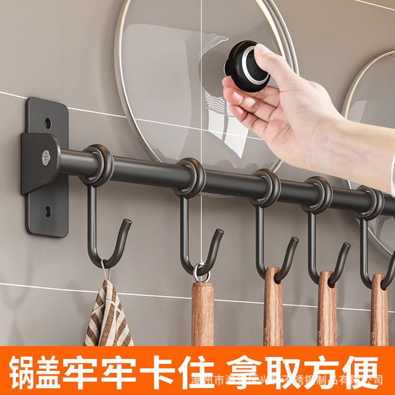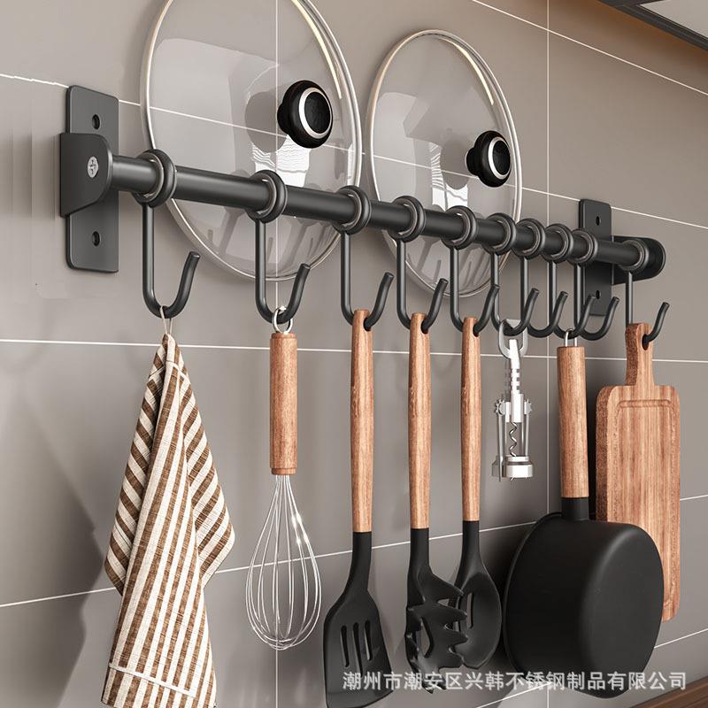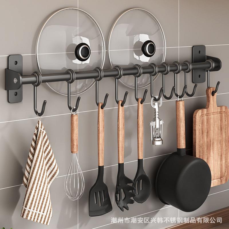 淘304不锈钢黑色厨房置r物架厨具五金厨卫挂钩挂件挂架挂杆免打孔壁