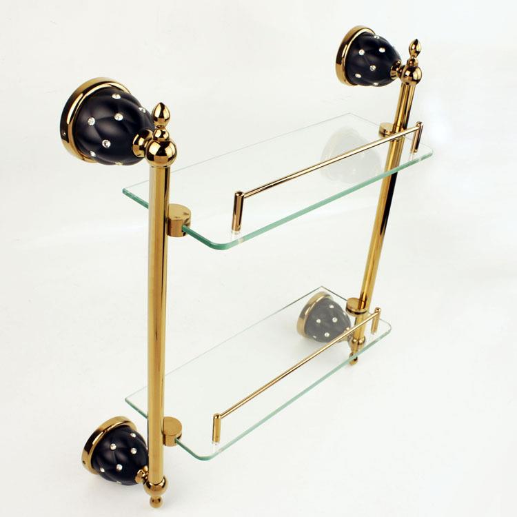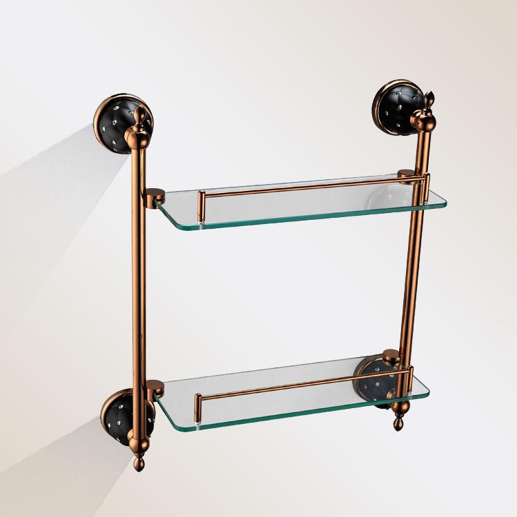 淘宝新款欧式浴室双层平台酒店卫生间玻璃置物架厨卫挂件套装厂家