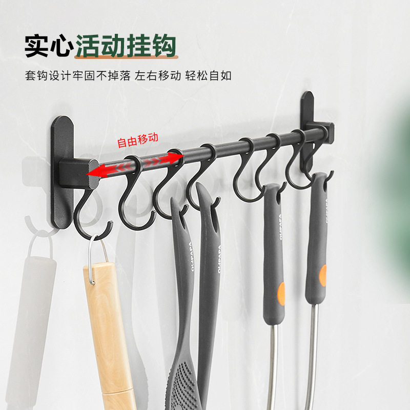淘免打孔厨房挂钩壁挂置物架 太空铝多功能厨卫挂件排钩锅铲钩挂架