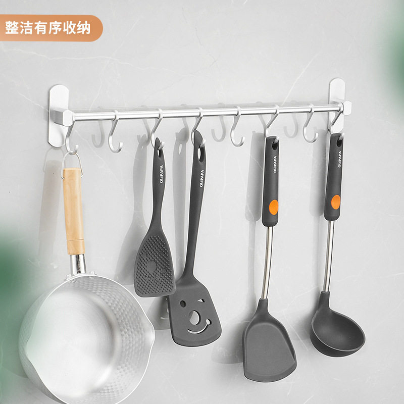免打孔厨房挂钩壁挂置物架 太空铝多功能厨卫挂件排钩锅铲钩挂架