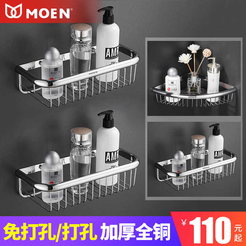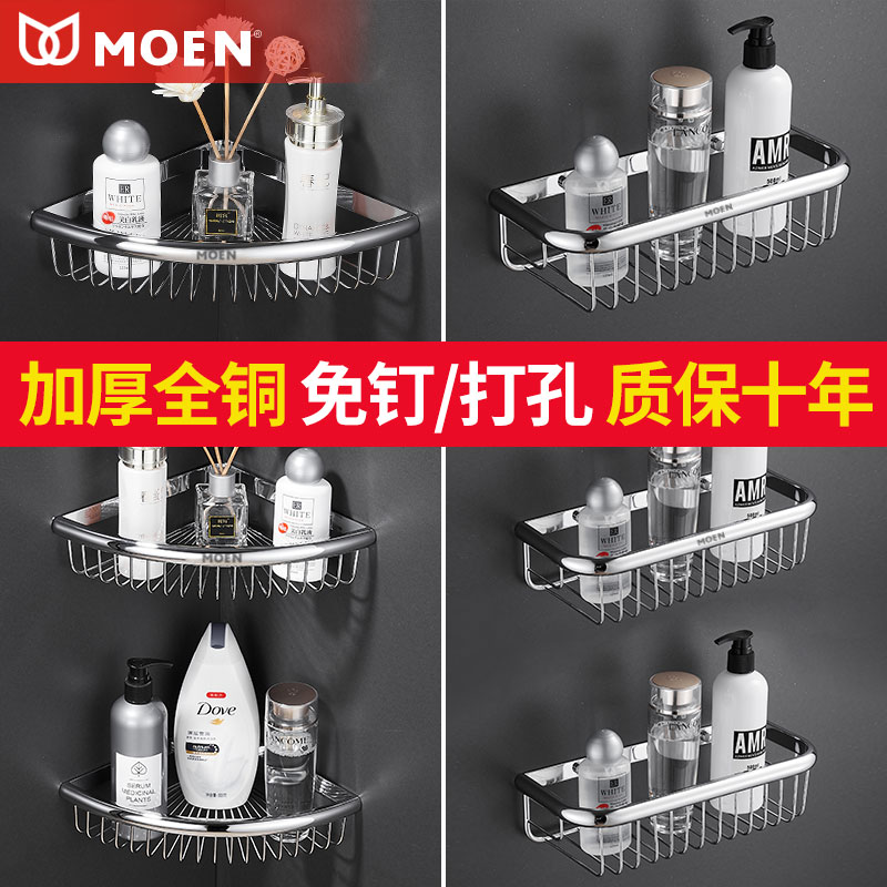 淘宝摩恩免打孔全铜三角篮浴室置物架壁挂卫生间收纳架转收纳角架网篮