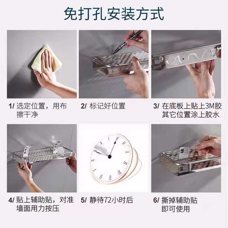淘宝新款直销免打孔卫生间置物架厨房不锈钢托盘洗手间浴室壁挂件厨卫