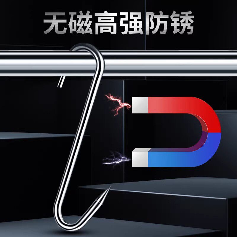 淘宝腊肉挂钩不锈钢S型晒腊鱼挂烤鸭香肠猪肉尖头勾子加粗S钩挂肉钩子
