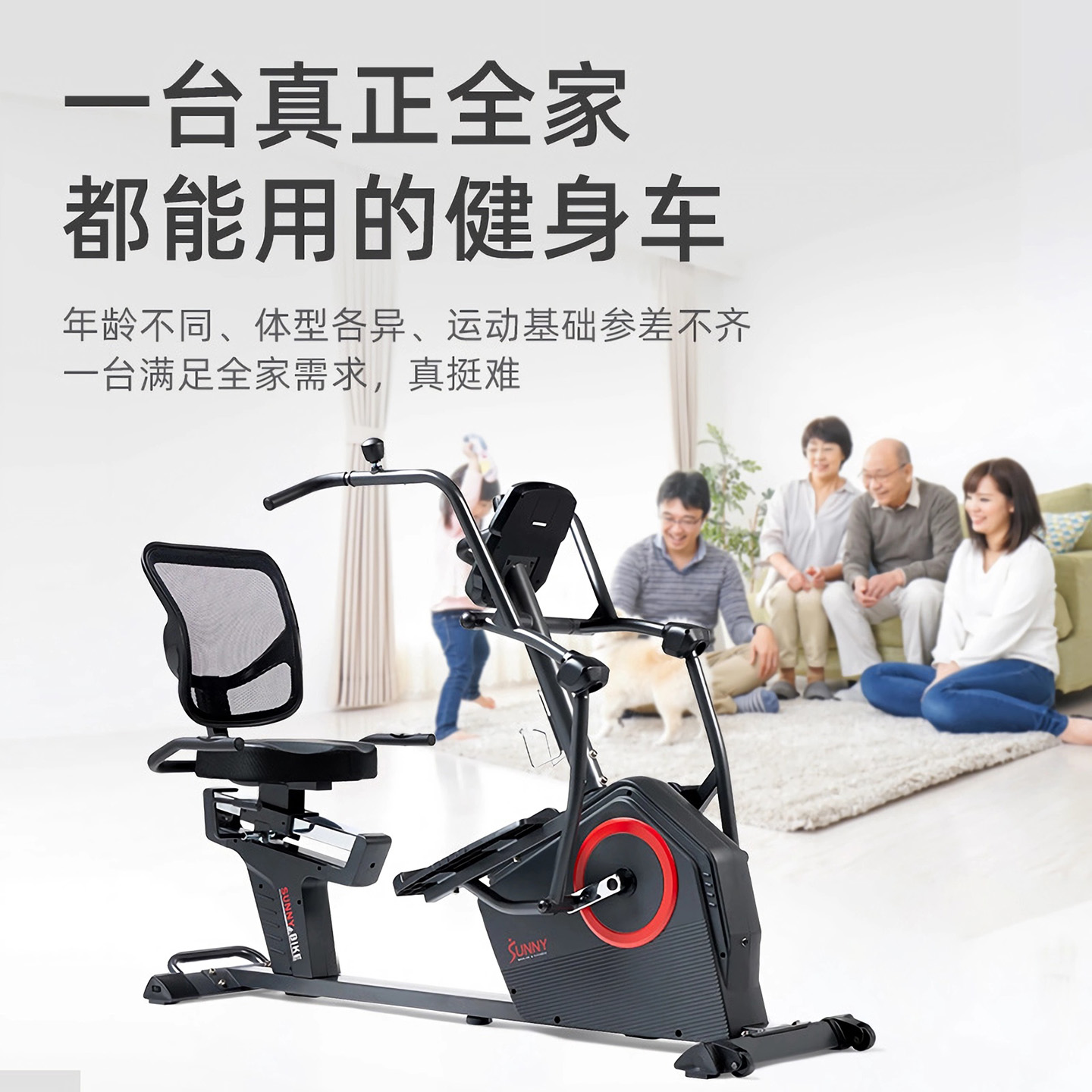 美国SUNNY卧式健身车家用康复脚踏车自行车训练器椭圆机护膝静音