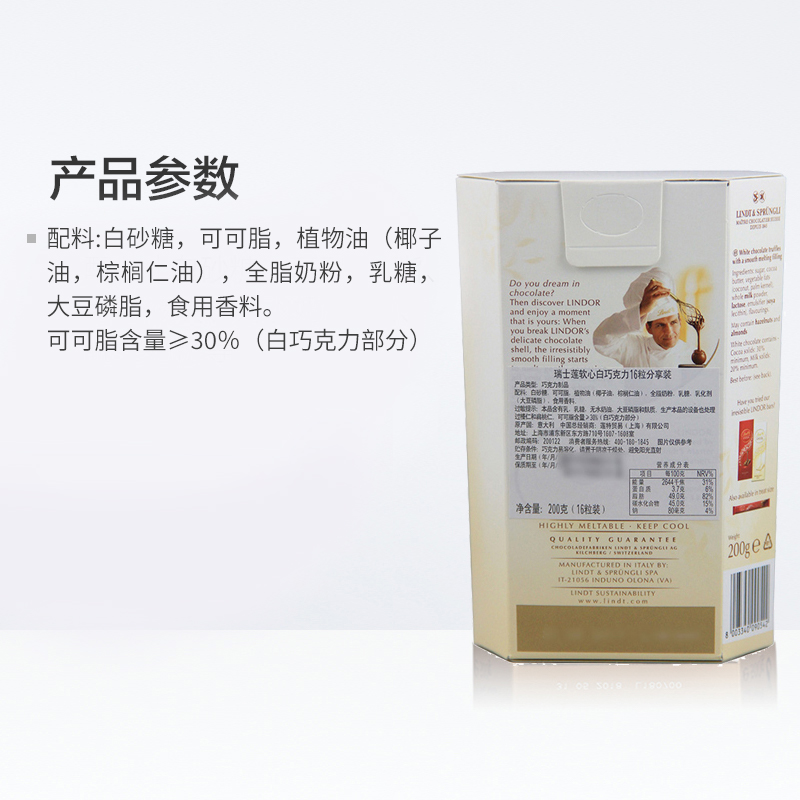 天猫【正品行货】Lindt瑞士莲软心白巧克力分享装200g节日礼物伴手礼