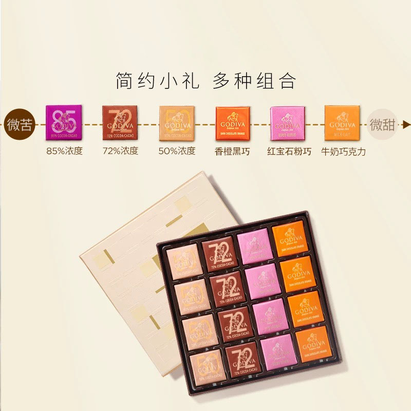 天猫【自营】GODIVA歌帝梵牛奶黑巧克力礼盒16片零食伴手礼物【临期】