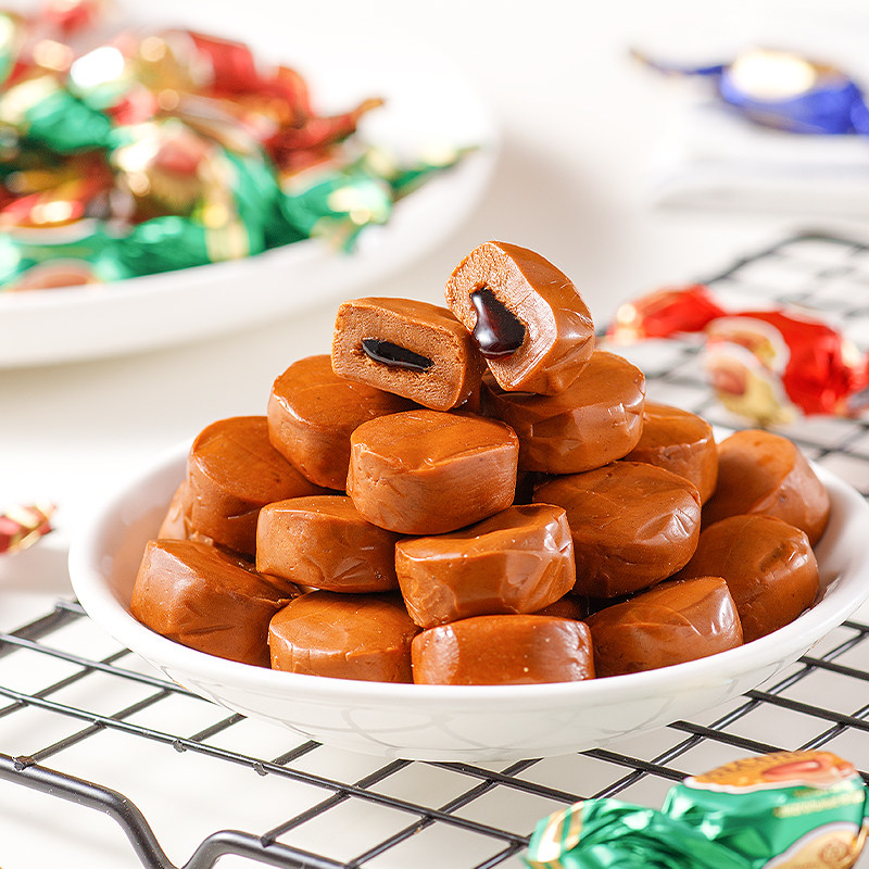 这款混合太妃糖夹心太妃巧克力味糖果零食,精选优质原料精心制作,外层包裹浓郁香滑的巧克力,内馅为绵密香甜的太妃夹心,口感层次丰富,甜而不腻。每袋净重500克,约含60颗独立小包装糖果,方便分享与携带。产品包装喜庆精美,红色系设计寓意吉祥美满,非常适合作为婚礼喜糖、节庆礼品或节日伴手礼。支持批发订购,性价比高,是婚庆、生日派对、企业活动及零售的理想选择。无论是馈赠亲友还是自用享用,都能带来满满的幸福感与甜蜜回忆。