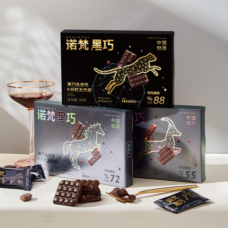 天猫诺梵3盒装纯黑巧克力健身节日礼物超苦可可脂糖果烘焙零食送女友