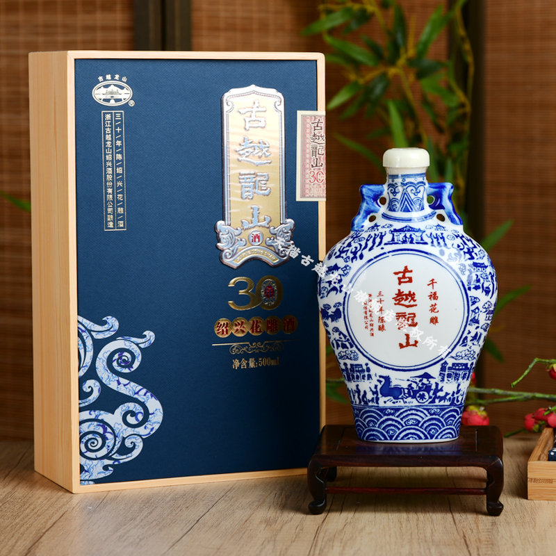 天猫古越龙山绍兴黄酒三十年陈千福花雕500ml单瓶半干型礼盒装