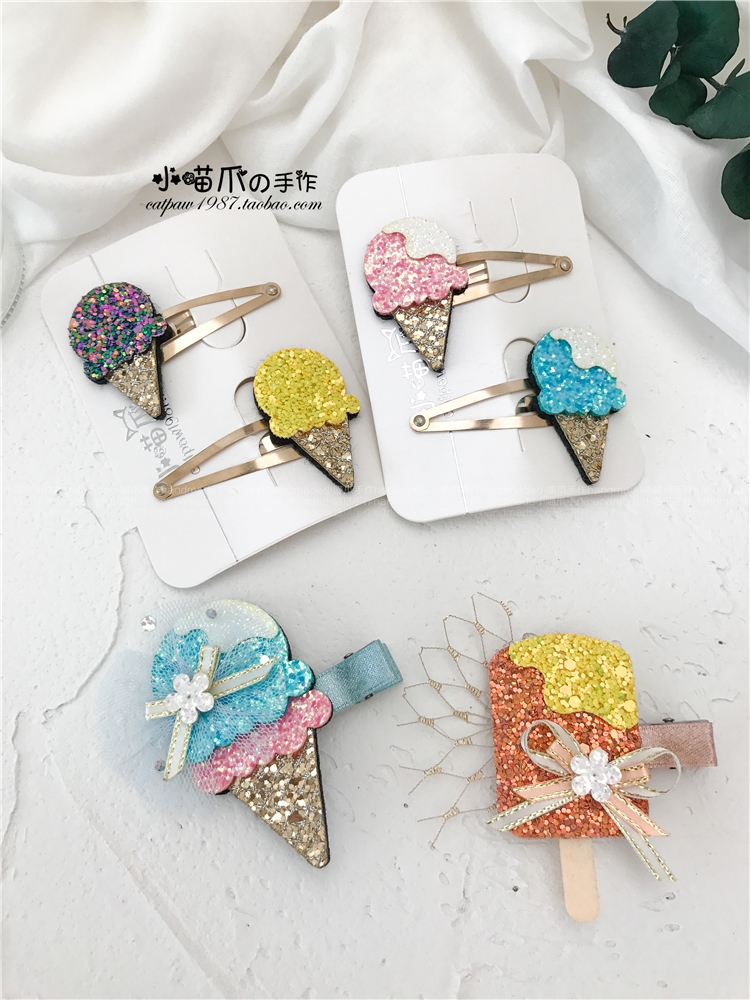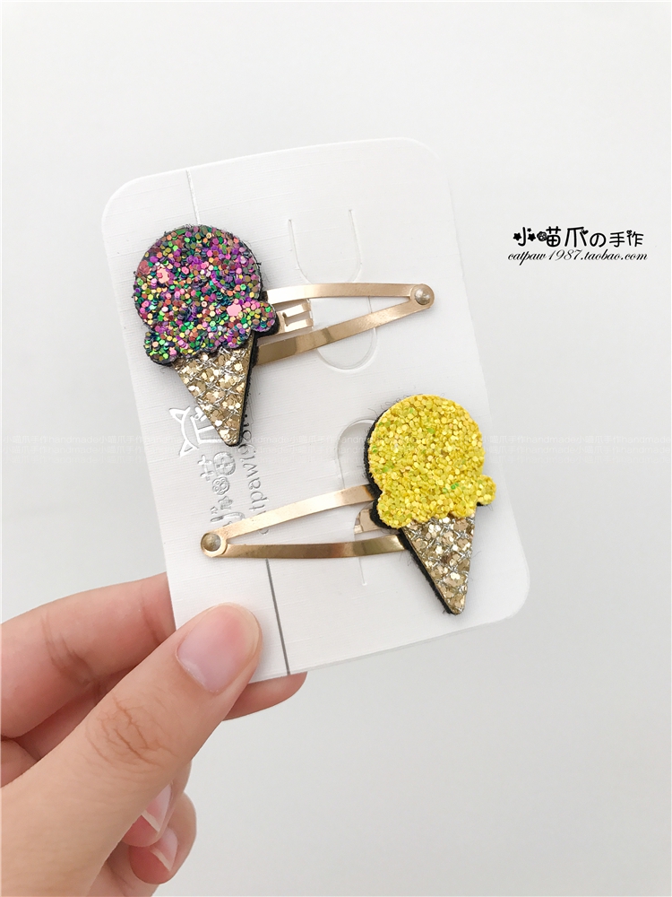 淘宝小喵爪手作韩国进口手工大亮片闪亮冰淇淋冰棍儿童发饰发夹对夹