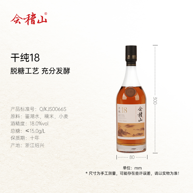 天猫会稽山绍兴正宗黄酒 干纯18糯米老酒700ml脱糖干型非遗传承发酵酒