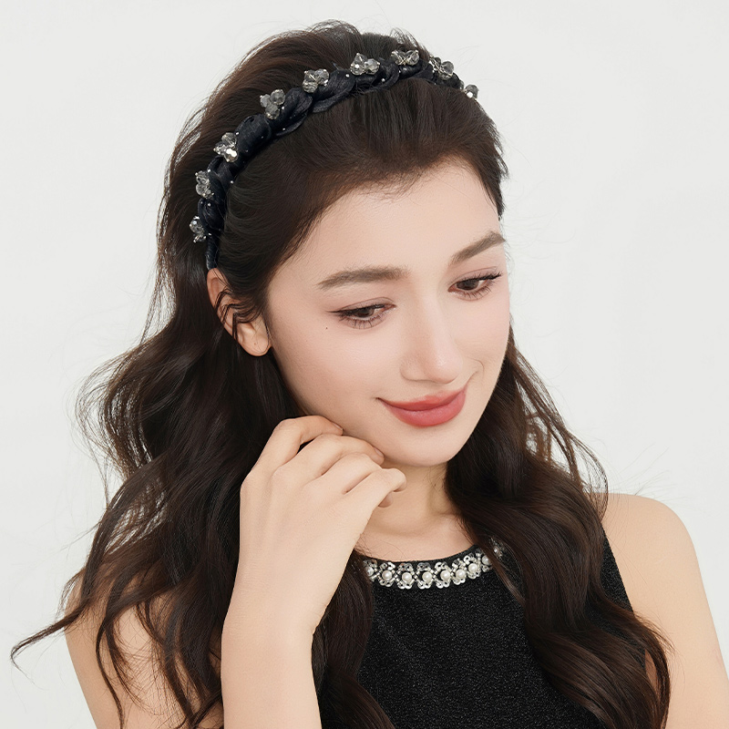 天猫巴黎王妃仿水晶串珠波浪发箍女气质蓬松高颅顶带齿头箍洗脸发饰品