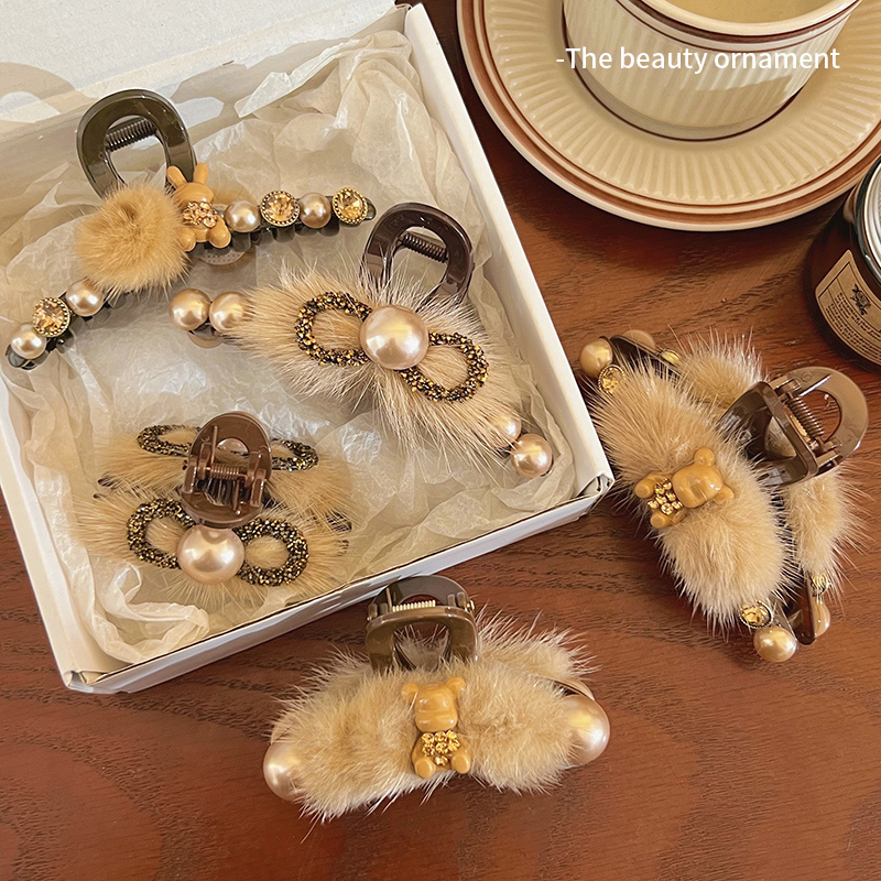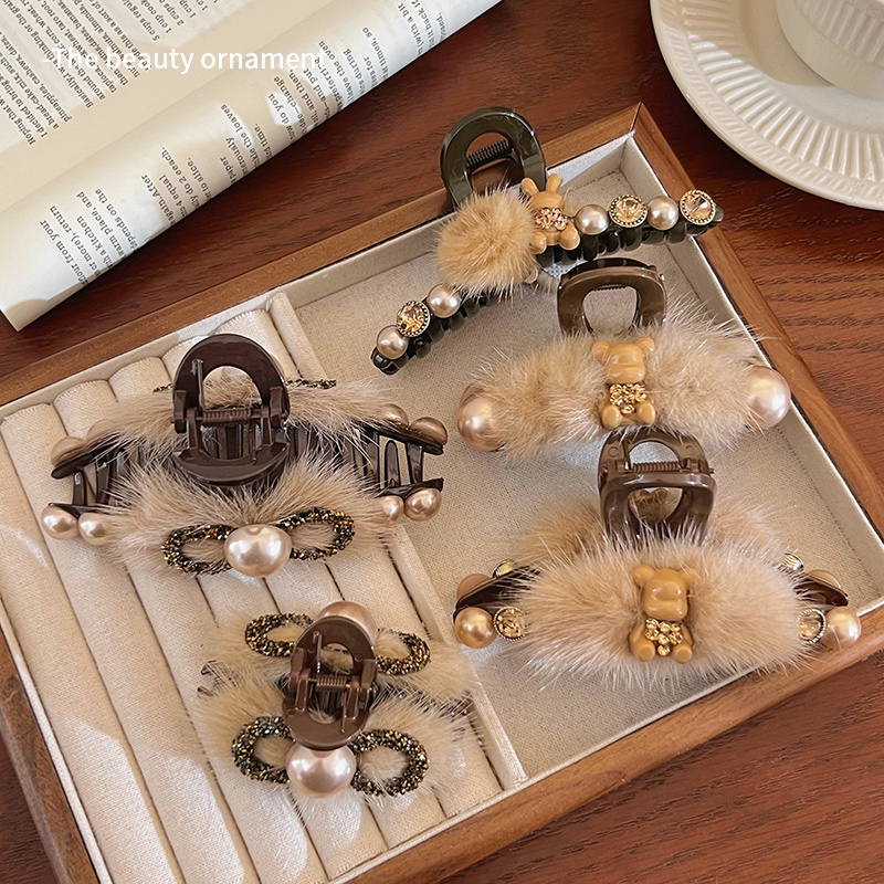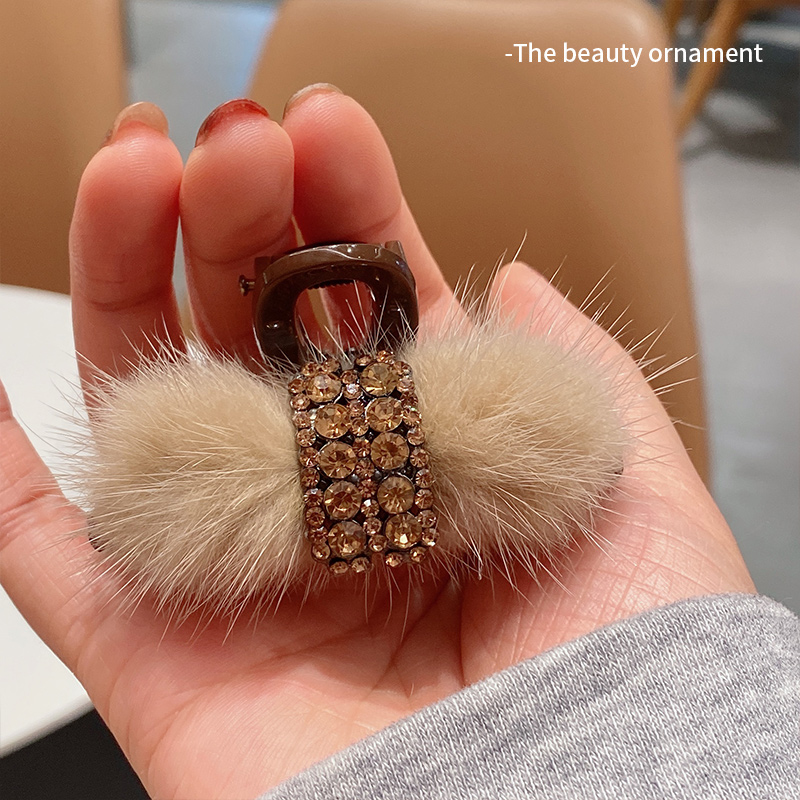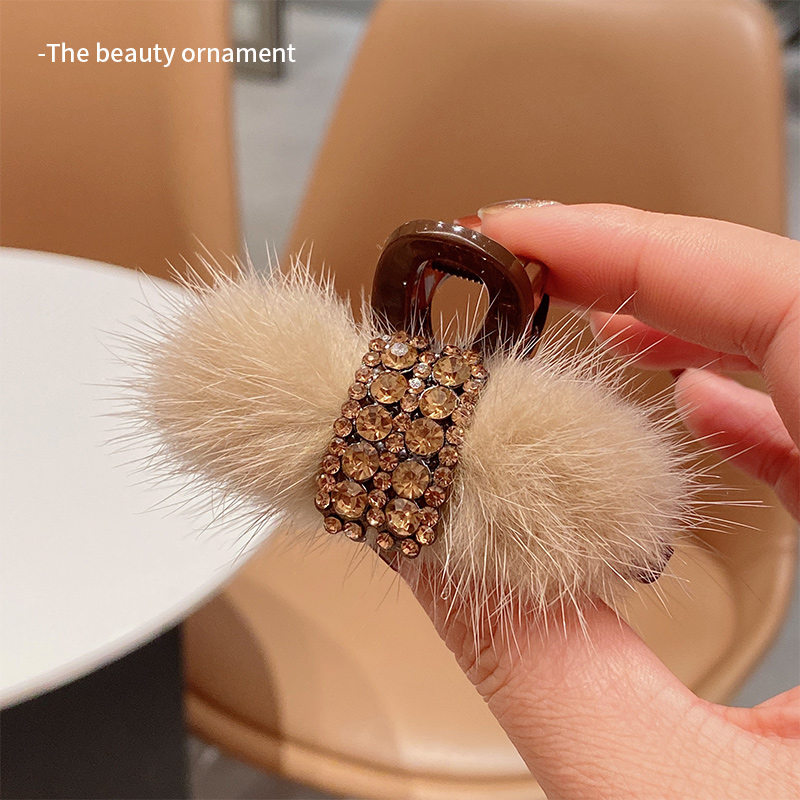 天猫韩版水钻毛绒小抓夹2025新款女秋冬半扎发夹气质鲨鱼夹发卡子头饰