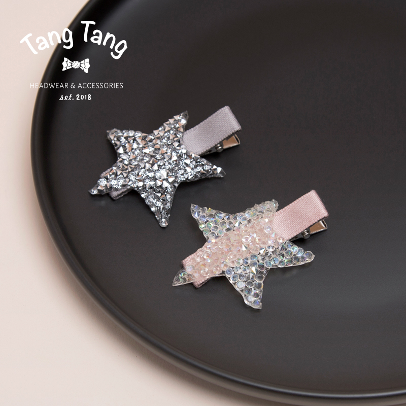 淘宝韩国闪钻儿童发饰银灰色五角星发夹女童碎发卡宝宝闪亮刘海夹头饰