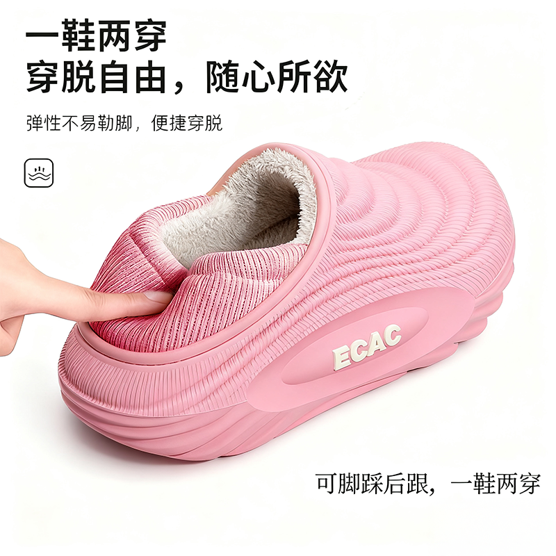 天厚底棉拖鞋女款2025新款秋冬季外穿防滑防水增高毛绒保暖棉拖冬天