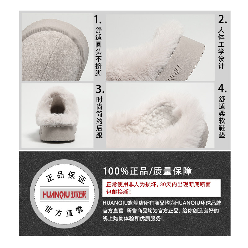 天猫环球厚底加绒棉拖鞋女款2026冬季新款家居加厚保暖女鞋毛毛半拖鞋