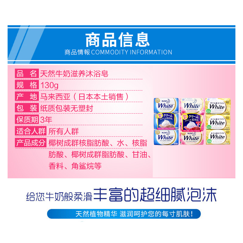 日本进口花王香皂white植物牛奶玫瑰柠檬香洗脸洁面皂沐浴皂肥皂