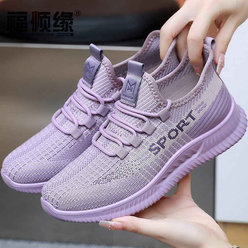 天猫福顺缘春秋女鞋透气飞织布鞋轻软底一脚蹬宽松运动休闲情侣女单鞋