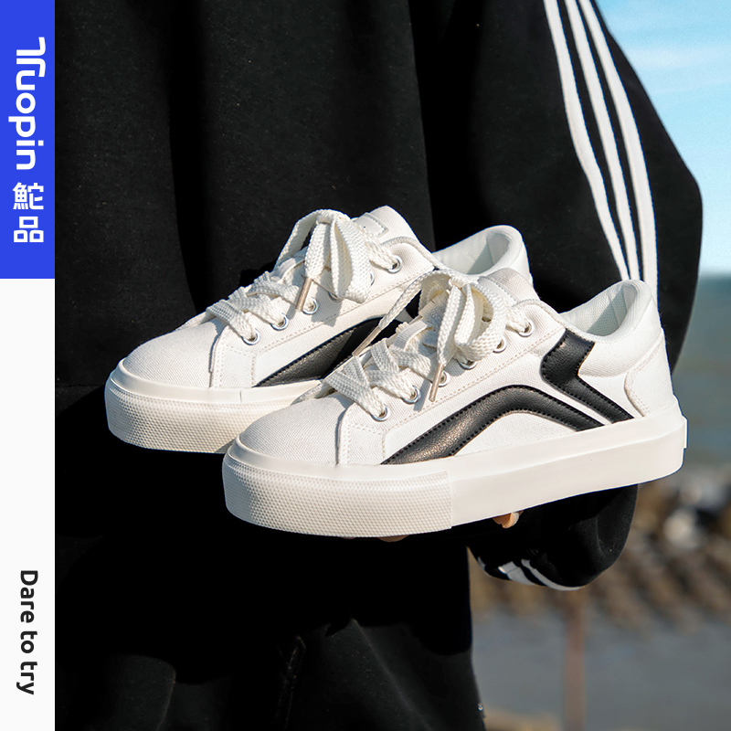天猫鮀品小白鞋女款配裙子2025夏季新款透气帆布鞋子百搭厚底白色板鞋