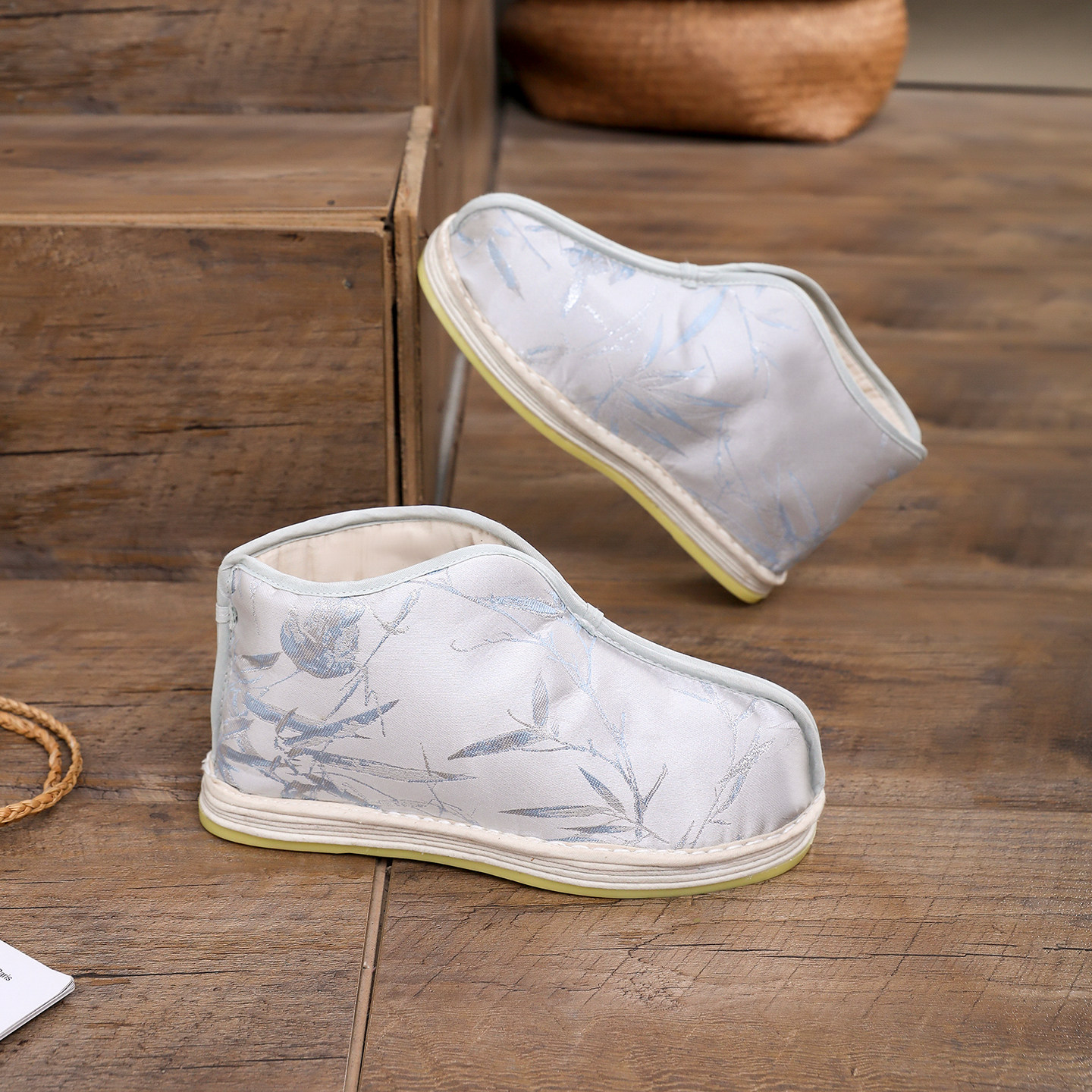 秋冬新款老北京布鞋女鞋,融合传统国风与现代时尚,以清新雅致的竹叶纹为设计亮点,寓意节节高升、平安吉祥。采用优质棉麻面料,内里加厚保暖绒,轻盈透气又御寒,适合秋冬季节穿着。纯手工纳制的千层底,柔软耐磨、回弹性佳,久走不累,呵护双足健康。平底设计贴合脚型,舒适百搭,无论是搭配汉服、休闲裤还是裙装,皆显温婉气质。匠心工艺与实用功能完美结合,既传承百年非遗技艺,又满足现代女性对舒适与美观的双重追求,是秋冬出行的理想之选。