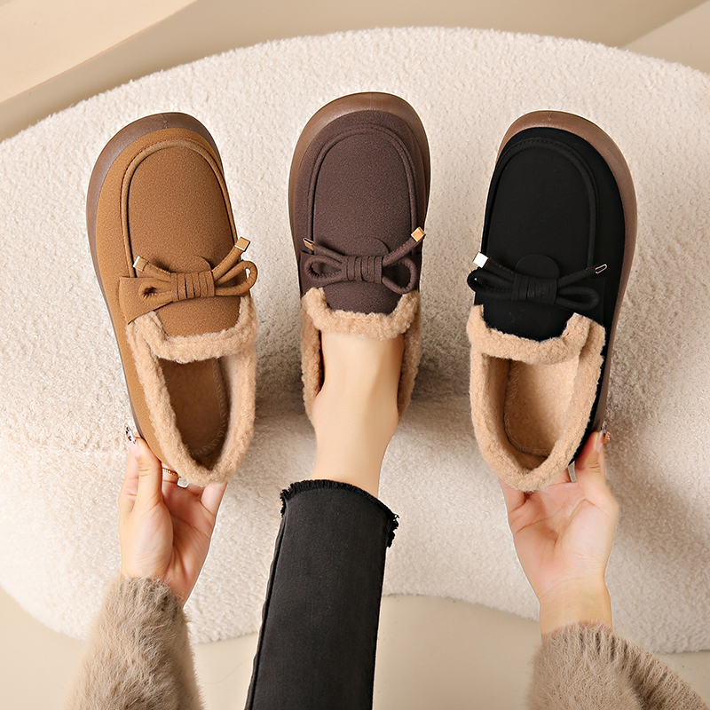 秋冬老北京布鞋女平底保暖棉鞋加绒防滑工作鞋女鞋黑色软底豆豆鞋