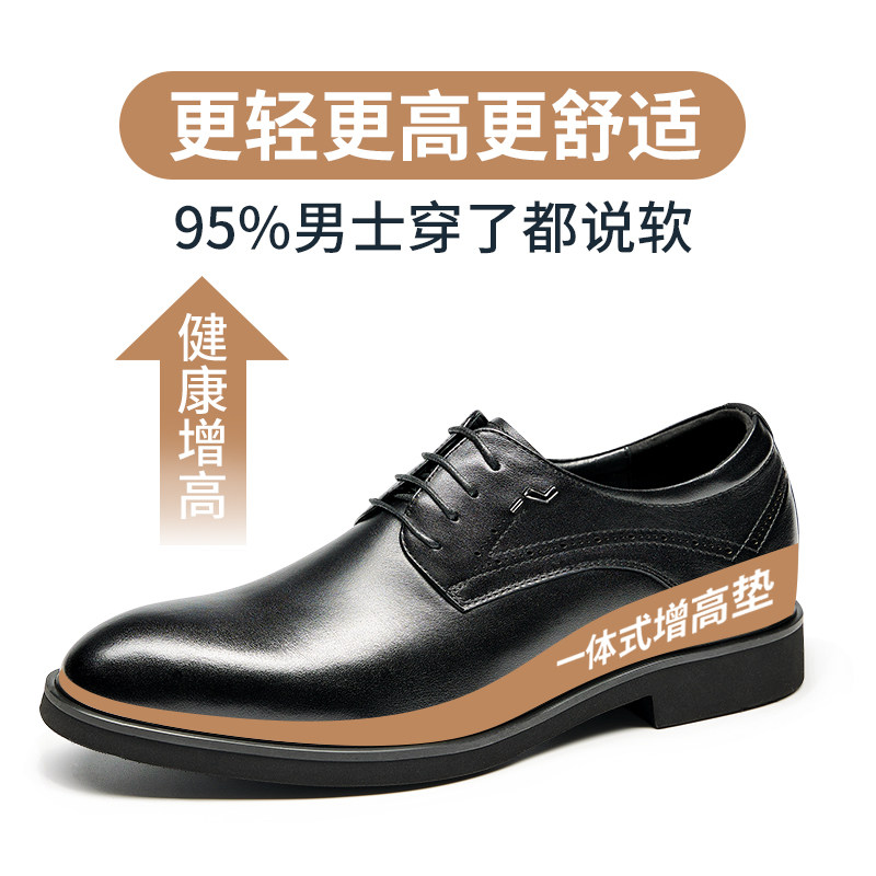 高哥10cm增高鞋男冬季加绒商务正装鞋,专为追求舒适与型格并重的男士打造。采用优质真皮材质,质感细腻,透气耐穿,内里加绒设计,冬季穿着温暖舒适。隐形10cm内增高设计,自然提升身高,优化身材比例,行走稳健不累脚。鞋型简约大气,契合商务、婚礼、会议等多种正式场合,轻松搭配西装或正装裤。轻量化鞋底减轻足部负担,久穿不累。无论是职场精英还是新郎礼服搭配,这款皮鞋都能彰显自信与品味,是男士提升气质的理想之选。