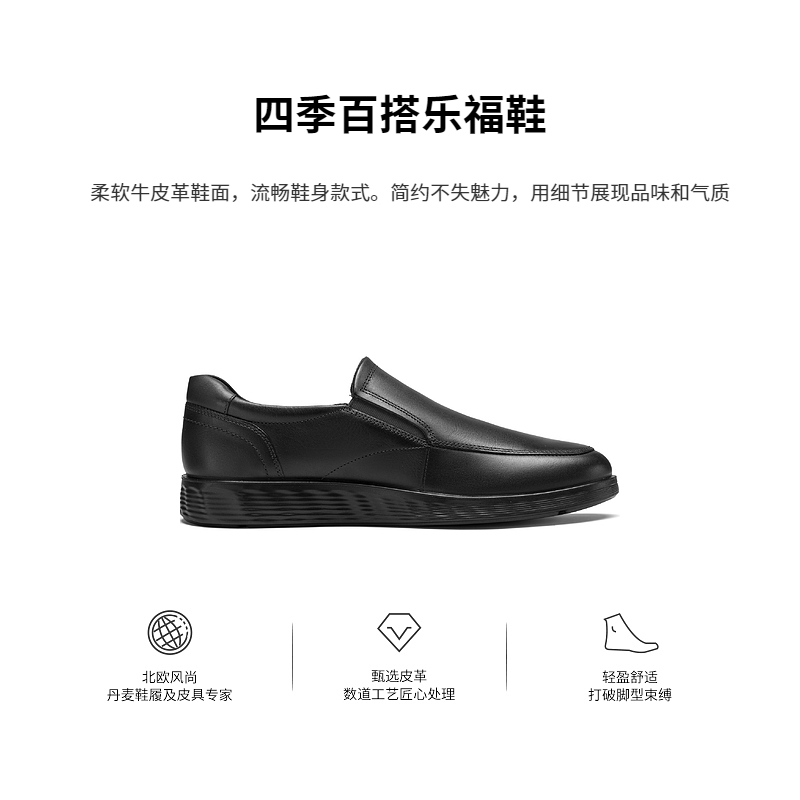 天猫ECCO爱步乐福鞋婚鞋男款 秋季牛皮亮面一脚蹬皮鞋 轻巧混合520314
