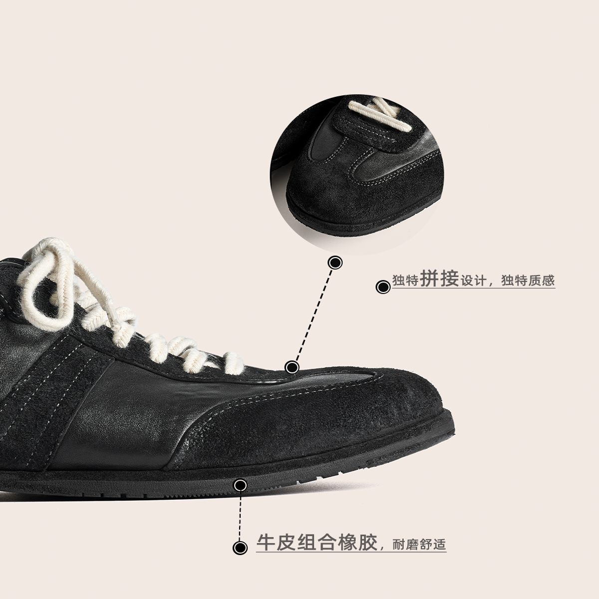 淘宝PIPG复古洗水马皮德训鞋 通勤高档黑色皮鞋男女 百搭透气休闲板鞋