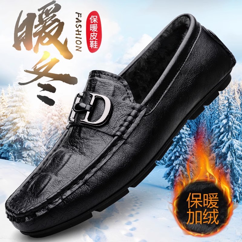 天猫公牛世家豆豆鞋男士2025新款秋冬季加绒棉一脚蹬乐福真皮休闲皮鞋