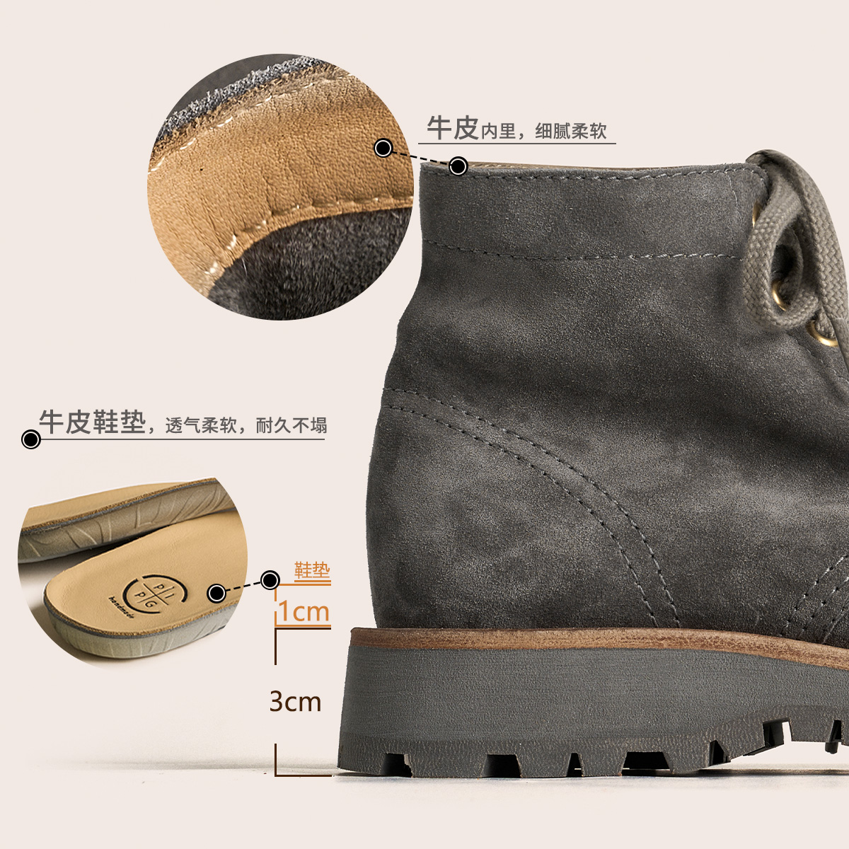 淘宝PIPG美式复古工装靴男增高真皮手工反绒马丁靴固特异厚底大头皮鞋