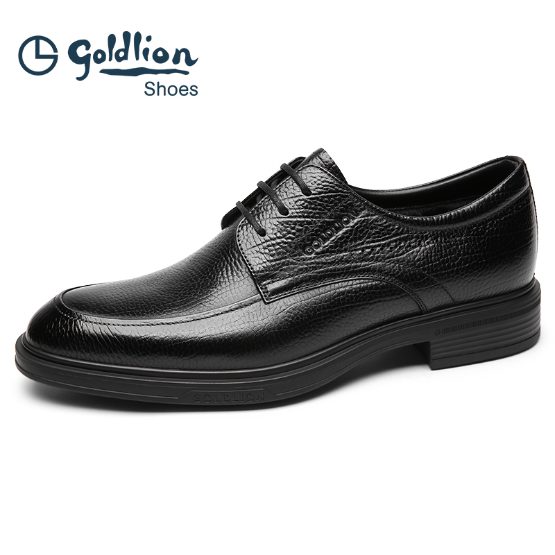 天猫金利来男鞋官方正品冬季新款保暖商务休闲皮鞋男士真皮厚底德比鞋